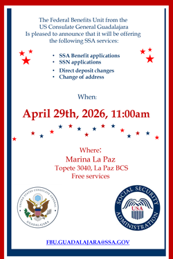 The Guadalajara Federal Benefits Unit will be in La Paz on Tuesday, April 28, offering in-person assistance with Social Security services.